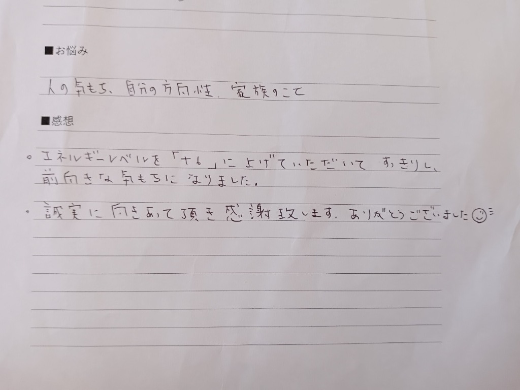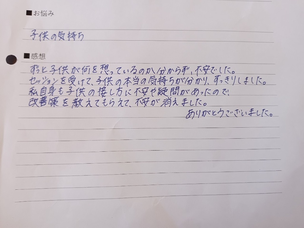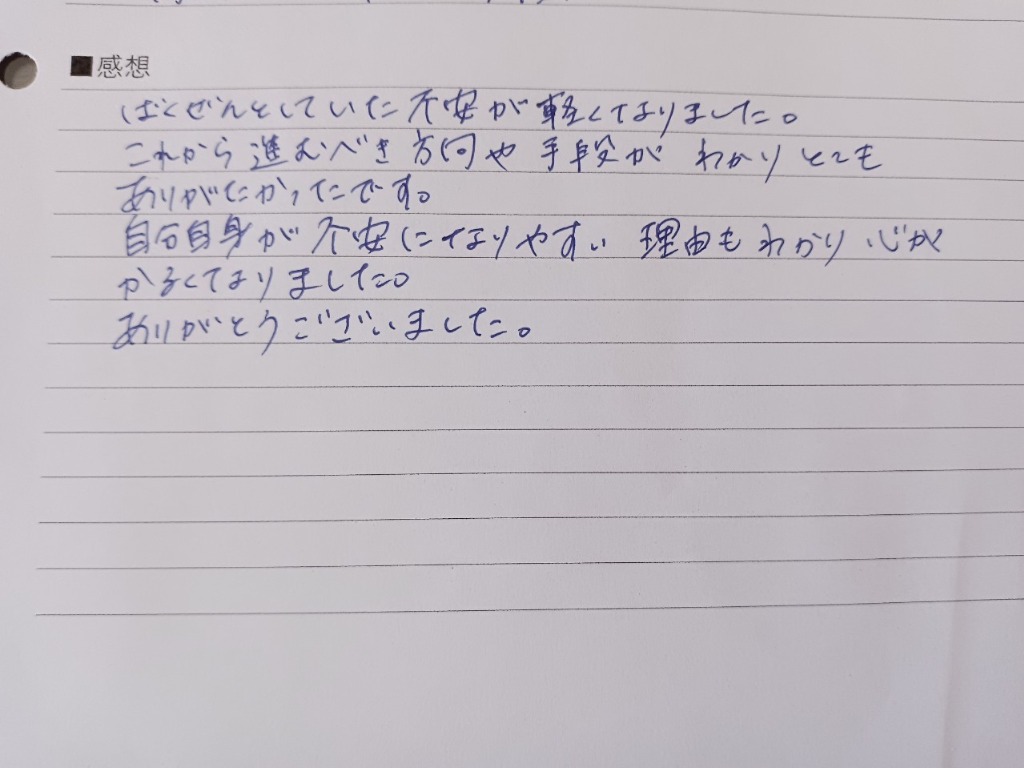 今は、話が聞けて、心がほっとしています。